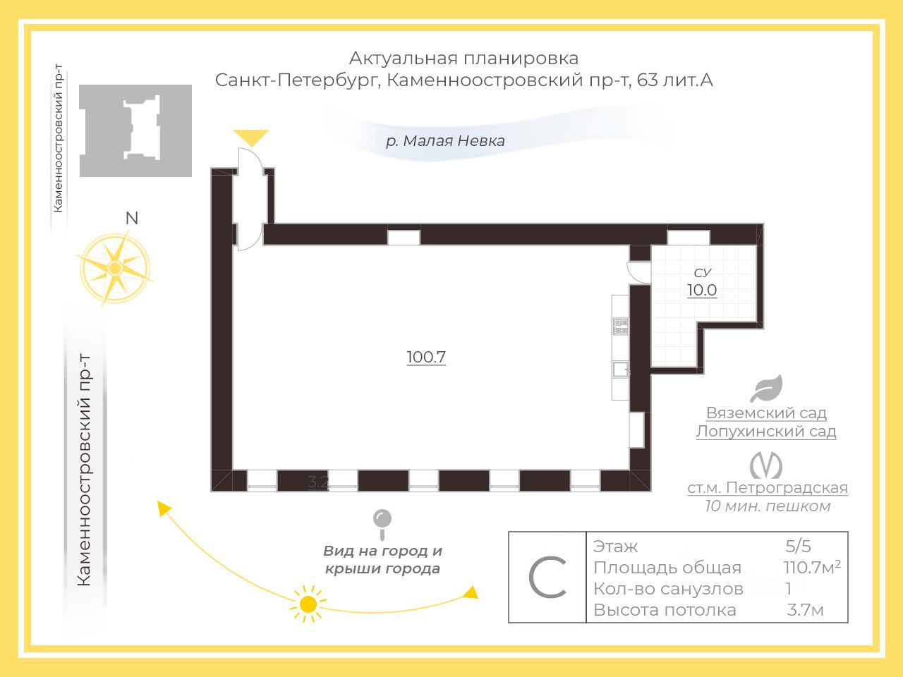 Арт. 128353567 Продаётся просторная квартира 111 м² в одной из самых статусных локаций Петроградской стороны — на Каменноостровском проспекте. Здесь ценят не только адрес, но и ощущение пространства: высота потолков 3,7 м даёт тот самый "петербургский масштаб". Из окон открывается вид на город и крыши Петербурга!