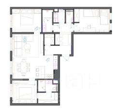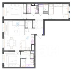 Видовая двухсторонняя квартира с панорамными окнами, потолки 3 метра, кухня-гостиная 32 кв.м., три изолированные спальни, отделка White Box. Квартира имеет множество планировочных решений.