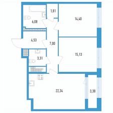 Продаётся 2-комнатная квартира в строящемся доме (Секции 15 и 16), срок сдачи: II-кв. 2026, общей площадью 76.29 кв.м., на 18 этаже.