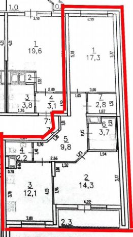 Удобная, рациональная планировка квартиры — по факту Евротрёшка. Просторная кухня гостиная 14,3 м2 с выходом на застеклённую лоджию 4,6 м2. Две комнаты правильной формы 12,7 и 17,3 м2, два санузла, гардеробная!
