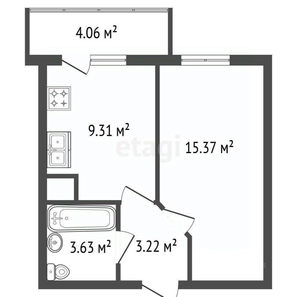 Светлая 1-к квартира с панорамным балконом и мебелью.