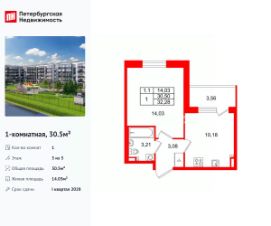 Продается уютная 1-комнатная квартира в жилом комплексе "Парадный ансамбль" в престижном Московском районе. До метро можно добраться на транспорте всего за 20 минут. Удобная, классическая планировка, кухня 10.18 м², вместительная прихожая 3.08 м². Общая площадь квартиры - 30.5 м², жилая 14.03 м², высота потолка 2.77 м. Квартира продается с отделкой "NORD LINE WHITE". Что особенного в ЖК "Парадный ансамбль"? • Инновационный Лицей Setl с оригинальной архитектурной концепцией и уникальной образовательной средой • Масштабное малоэтажное строительство в престижном Московском районе • Рекреационные зоны: парадный парк в центре квартала, ручей с собственной набережной, центральная площадь, ресторанный комплекс и пешеходный бульвар • Фасады из керамогранита и кирпича с яркими и акцентными входными группами • Две самые большие площадки Setl Kids и Setl Sport • Уникальные квартиры.High Flat на последних этажах, палисадники у квартир на первом этаже, семейные секции, квартиры с саунами и окном в ванной