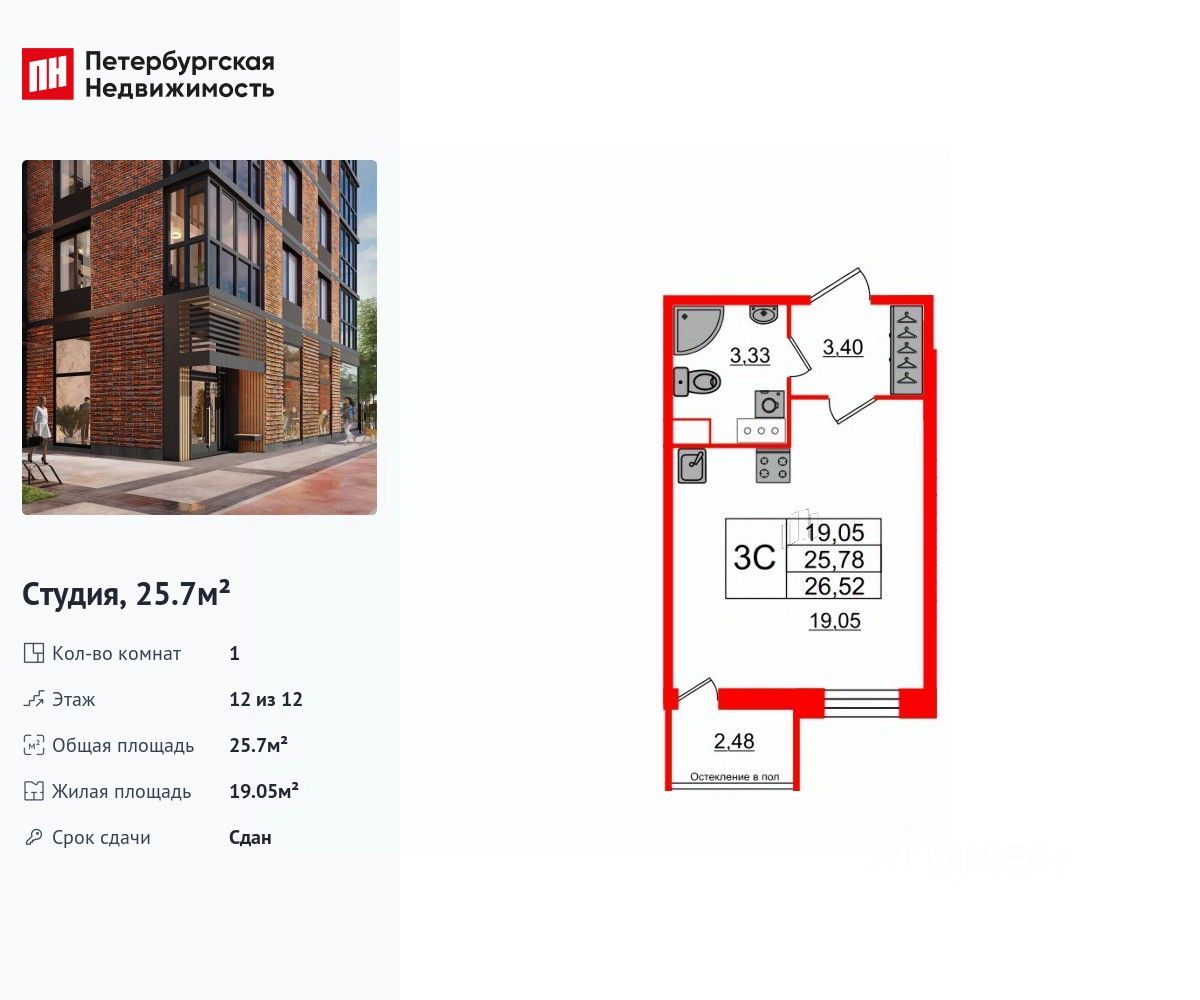Продается просторная студия в жилом комплексе "Сенат" в престижном Московском районе. До метро можно добраться пешком всего за 20 минут. Удобная, классическая, функциональная европланировка, просторная прихожая 3.4 м². Общая площадь студии - 25.7 м², жилая 19.05 м², высота потолка 3 м. Квартира продается с отделкой "NORD LINE SILVER ВК". Что особенного в ЖК "Сенат"? • Престижный Московский район • Авторская архитектурная концепция • Центральная входная группа с ресепшен и лаундж-зонами • Променад с воздушным мостом и просторными зонами отдыха • Зимний каток, площадки SetlKids и уютные дворы-патио • Инновационный Лицей Setl с оригинальной архитектурной концепцией и уникальной образовательной средой