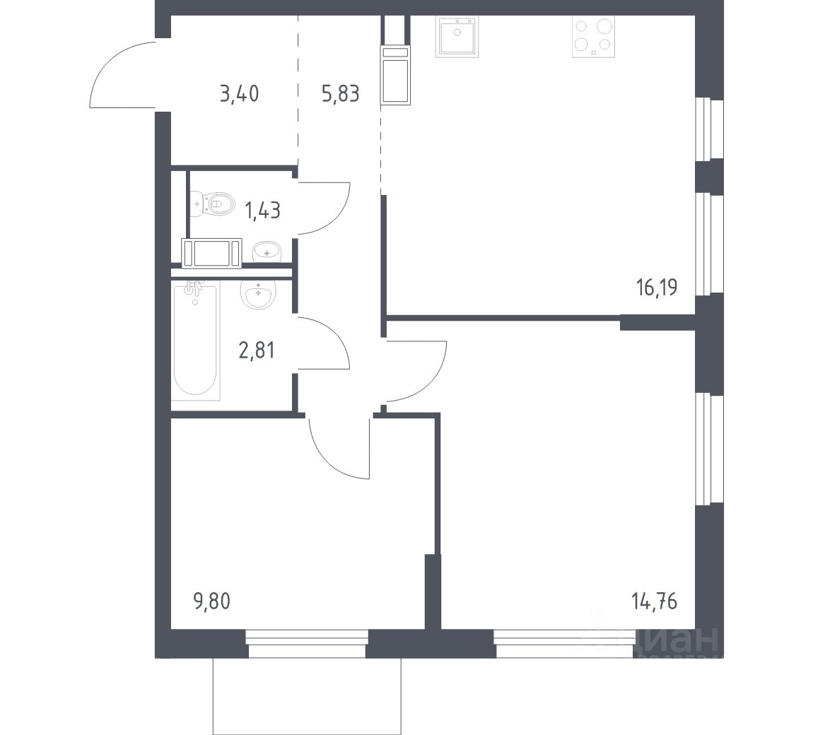 Квартира без отделки. Доступность опции "отделка" и возможность комплектации мебелью и декором уточняйте у застройщика.