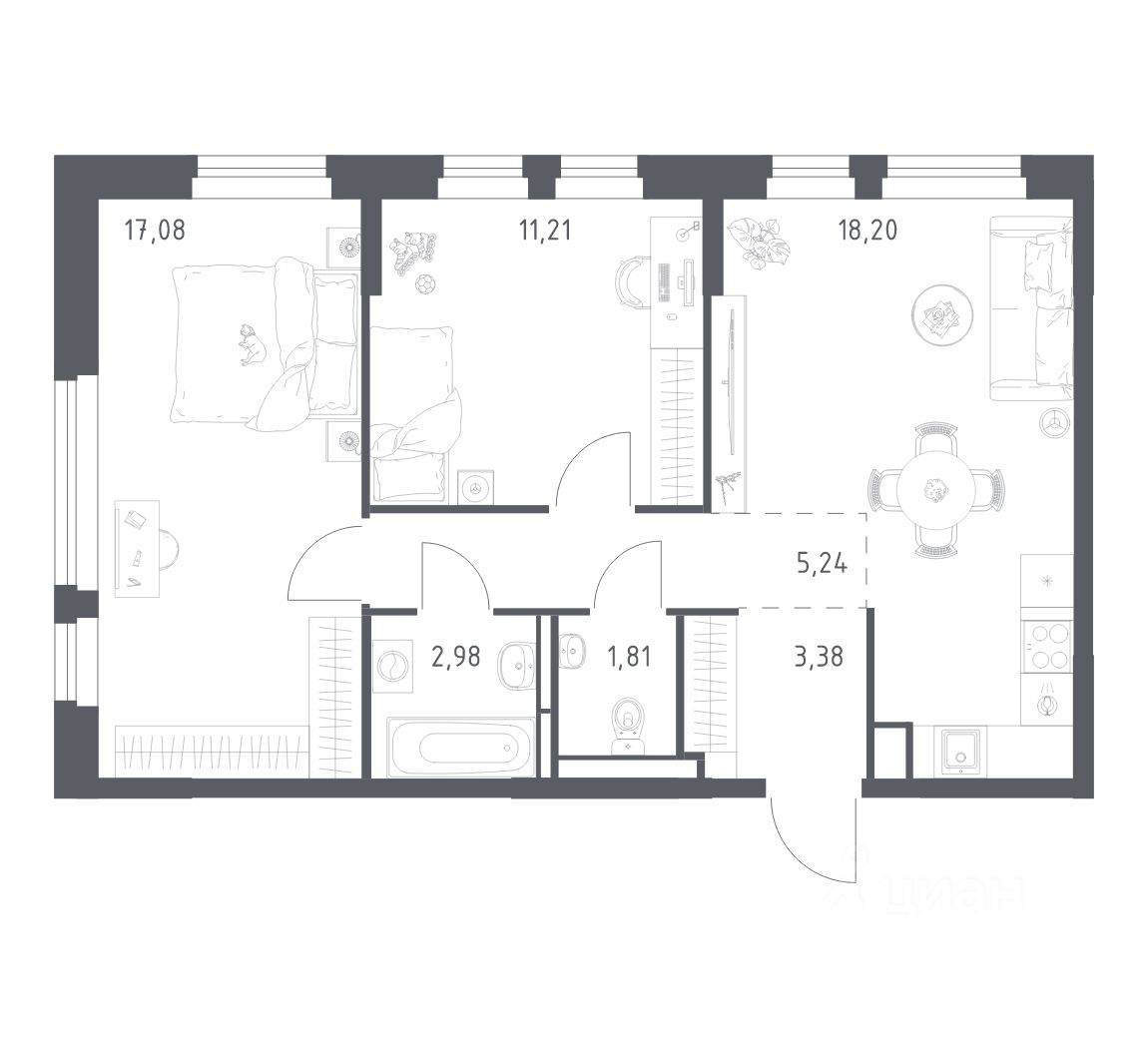 По желанию вы сможете получить ключи от квартиры с готовой отделкой. Мы положим ламинат, поклеим обои, установим мебель и сантехнику. Доступен вариант с готовой кухней — бежевые тона отделки станут фоном для интерьера мечты.