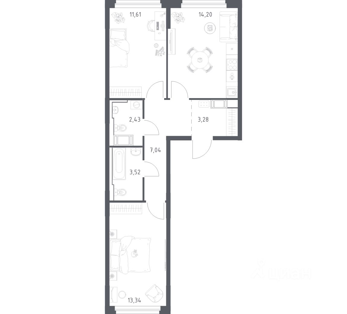 В варианте с предчистовой отделкой мы развели коммуникации по помещениям, выровняли и зашпаклевали стены, подготовили пол к чистовому покрытию. Ваша будущая квартира готова к финишному ремонту. Осталось выбрать, какие оттенки будут в вашем интерьере и воплотить дизайнерские идеи.
