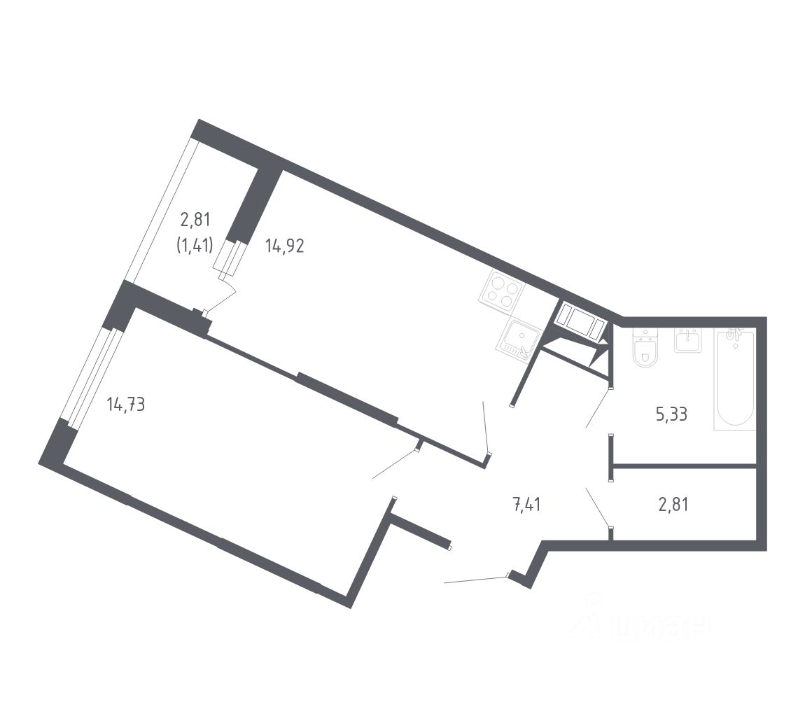 Жилая площадь14,7 м²