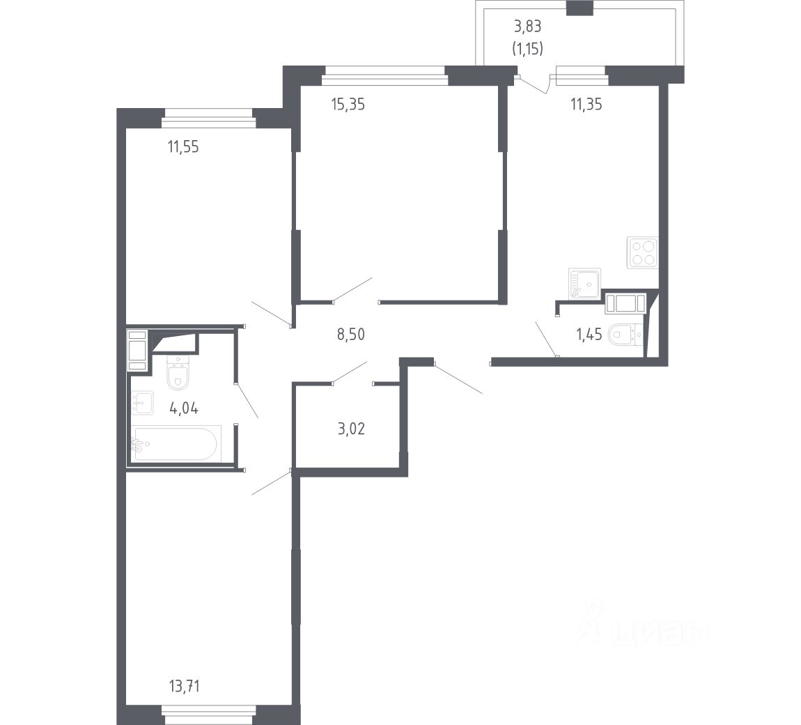 Площадь кухни11,4 м²