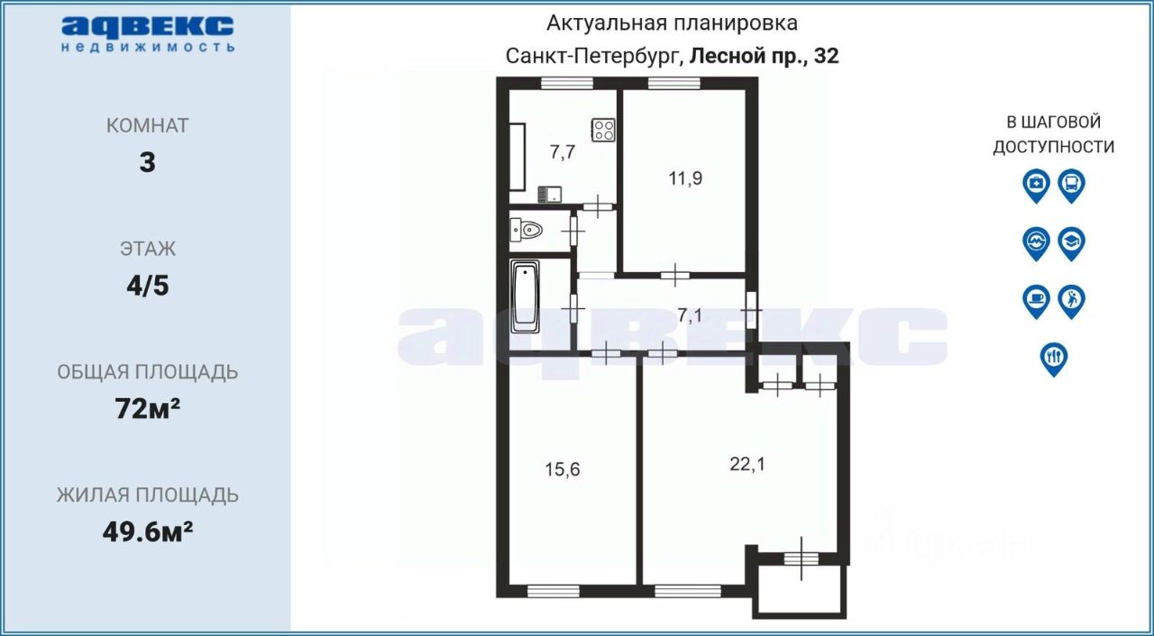 Инфраструктура района прекрасно развита: поблизости находятся школы, детские сады, клиники, магазины, парк и фитнес центр. Всё необходимое для комфортной жизни - в шаговой доступности.