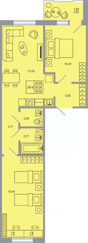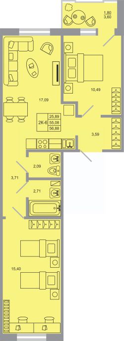 Продаётся 2-комнатная квартира в строящемся доме (Корпус 17), срок сдачи: I-кв. 2027, общей площадью 56.88 кв.м., на 9 этаже. Новый жилой комплекс "Стороны света-2" от застройщика "ГК Прок" расположен по адресу Ленинградская область, Всеволожский район, посёлок Бугры, Тихая улица.