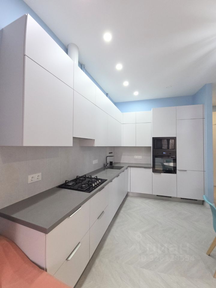 Стены под покраску. В квартире остается вся мебель и техника: шкаф, кровать, полностью укомплектованная кухня: диван, телевизор, обеденная зона, духовой шкаф, встроенный холодильник, посудомойка, стиральная машина.