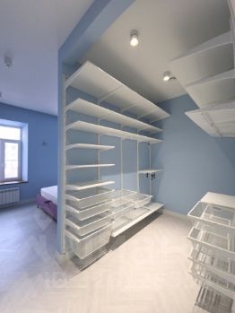Две спальни из трех имеют отдельную гардеробную! Суммарно площадь гардеробных - 10 кв.м. Большая гардеробная полностью укомплектована системами хранения.