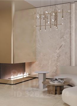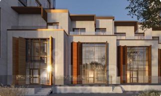 • Фасады: панели с имитацией листов латуни + крупноформатные плиты под светлый природный камень