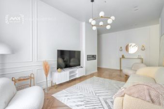 — Дизайнерская отделка с элементами под золото: акценты на светильниках и фурнитуре