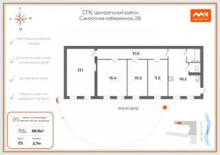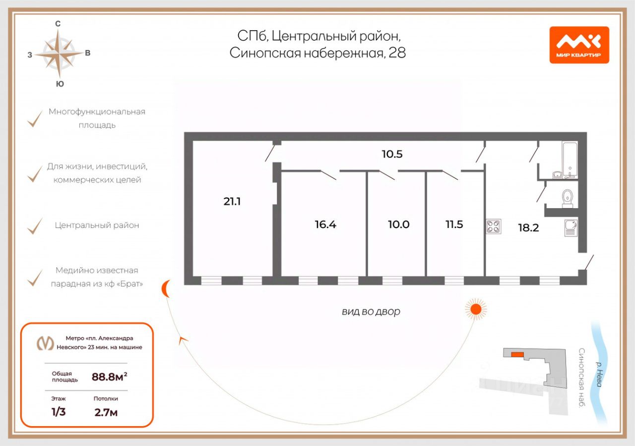 Арт. 128895271 Предлагаем к покупке уникальный объект в доме купца М.Е. Трофимова с дворовым корпусом по следам к/ф "Брат"! В той самой парадной, где снимал комнату герой фильма! Из этого складывается уникальная историческая и медийная принадлежность объекта!
