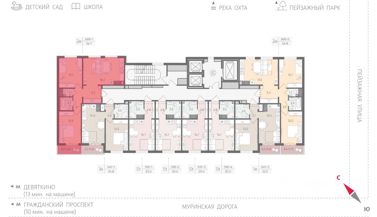 • 20 минут на авто до станций "Гражданский проспект" и "Академическая";