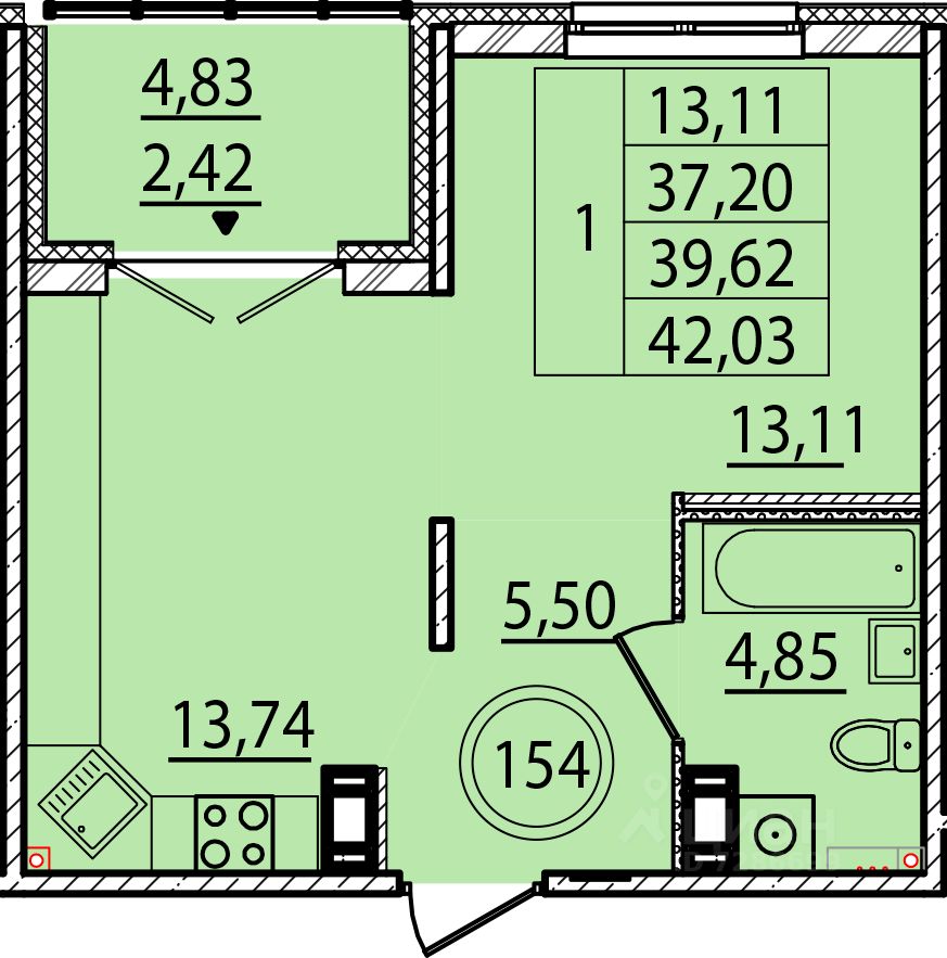 Общая площадь37,2 м²