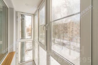 Застеклённый балкон 1,4 кв.м. с панорамными окнами в пол и видом на зелёный двор.