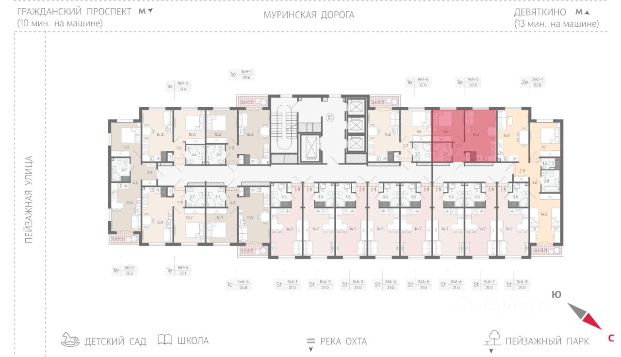 • 20 минут на авто до станций "Гражданский проспект" и "Академическая";