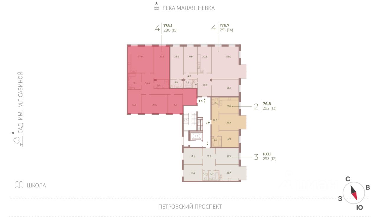 Цена действует при 100% оплате и на определенные ипотечные программы. Подробности — в отделе продаж по телефону. ЖК Нева Хаус - это масштабный проект элитного класса, который возведен застройщиком "ЛСР. Недвижимость - Северо-Запад" в одном из самых зеленых уголков Петроградского района. Он состоит из восьми монолитных разновысотных корпусов, в архитектурном облике которых гармонично сочетаются элементы постмодернизма, классического стиля и современных тенденций. Дизайн-проект ЖК был разработан известным петербуржским архитектором Евгением Герасимовым. Наружные стены домов оснащены износостойкими навесными фасадами и облицованы декоративным клинкерным кирпичом нескольких оттенков. Высота домов в проекте варьируется от 7 до 9 этажей. Комплекс оснащен современным оборудованием, которое обеспечивает жильцам максимальный уровень безопасности и комфорта. Покупателям предлагается разнообразный выбор планировок элитного жилья, начиная от просторных однокомнатных квартир и заканчивая пятикомнатными видовыми пентхаусами. Высота потолков в помещениях составляет 3-3.8 метра. Во всех форматах жилья предусмотрены большие кухни (от 12 кв. м), зонированные прихожие с отдельными гардеробными, увеличенные оконные проемы, ниши для установки кондиционеров и изолированные от бытовых помещений спальни. Разнообразие планировок включает варианты с просторными террасами, объединенными кухнями-гостиными, раздельными санузлами и дополнительными туалетами, эркерами и помещениями нестандартной формы. Площадь квартир - 46.87-300.79 квадратных метров. Базовая стоимость жилья не включает предчистовую или чистовую отделку помещений. В готовых квартирах установлены усиленные дизайнерские двери, оконные блоки с дерево-алюминиевыми рамами из натурального дуба и двойными стеклопакетами, современные отопительные радиаторы, оснащенные регуляторами температуры, и счетчики с функцией автоматического сбора и передачи данных. Закрытые дворы комплекса превращены в уютные прогулочные зоны для детей и взрослых. Застройщик выполнил озеленение пространства, согласно авторскому проекту ландшафтного дизайна, проложил велодорожки и тротуары, организовал закрытую набережную, установил многофункциональные спортивно-игровые городки, беседки, лавочки и стойки для велосипедов. Вся территория ЖК круглосуточно находится под охраной и видеонаблюдением. Для автотранспорта жильцов новостройки предусмотрены подземные паркинги с возможностью доступа из всех парадных на лифте. Их общая вместимость составляет 907 машиномест. Для посетителей организованы наземные стоянки по внешнему периметру территории. Жилой комплекс Нева Хаус находится в элитном районе города в окружении разнообразных объектов инфраструктуры. В пешей доступности работают гимназии, бутики, рестораны, спортивный стадион "Петровский" и филиалы ВУЗов, есть парк и яхт-клуб. Купить квартиру в жилом комплексе Нева Хаус можно в рассрочку или с привлечением ипотечного кредита, в том числе, и на льготных условиях с использованием воен
