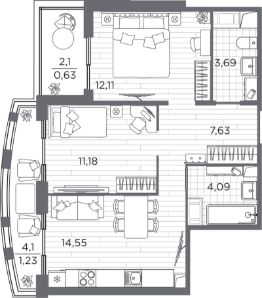 Продаётся 2-комнатная квартира в строящемся доме (Дом 6), срок сдачи: IV-кв. 2026, общей площадью 55.11 кв.м., на 5 этаже. Жилой квартал Respect - современная респектабельность.