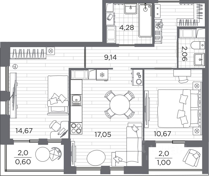 Продаётся 2-комнатная квартира в строящемся доме (Дом 6), срок сдачи: IV-кв. 2026, общей площадью 59.47 кв.м., на 5 этаже. Жилой квартал Respect - современная респектабельность.