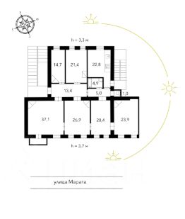 - 2 входа: основной с улицы Марата и черная лестница со двора.