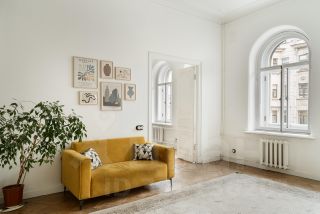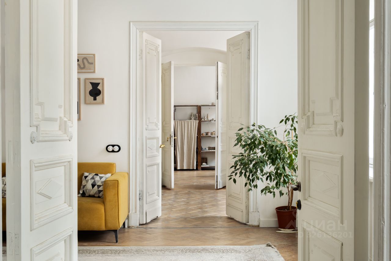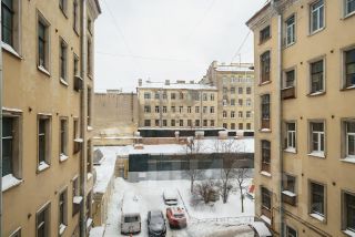 В квартире 8 арочных окон с видом на улицу Марата, исторические двери и лепнина. К каждому окну подобрана оригинальная фурнитура. Все двери и лепнина после бережной реставрации. Сохранился старинный художественный дубовый паркет.