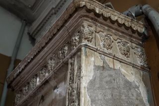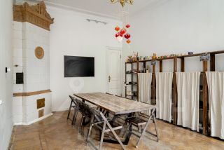 В парадной требуется ремонт, но в ней сохранилась печь, дубовые двери и лепнина. Лифта нет.