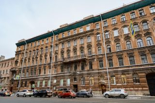 Дом-памятник 1883-1884 года постройки с деревянными перекрытиями. Фасад богато украшен колоннами-пилястрами и сандриками, а балкон нашей квартиры обрамлен порталом. Печь и лепнина в одной из комнат находятся под охраной КГИОПа.