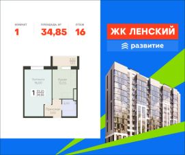В продаже квартира площадью 34.85 кв. м с отделкой на 16 этаже 16 этажного дома. Квартира находится в 4835 корпусе: