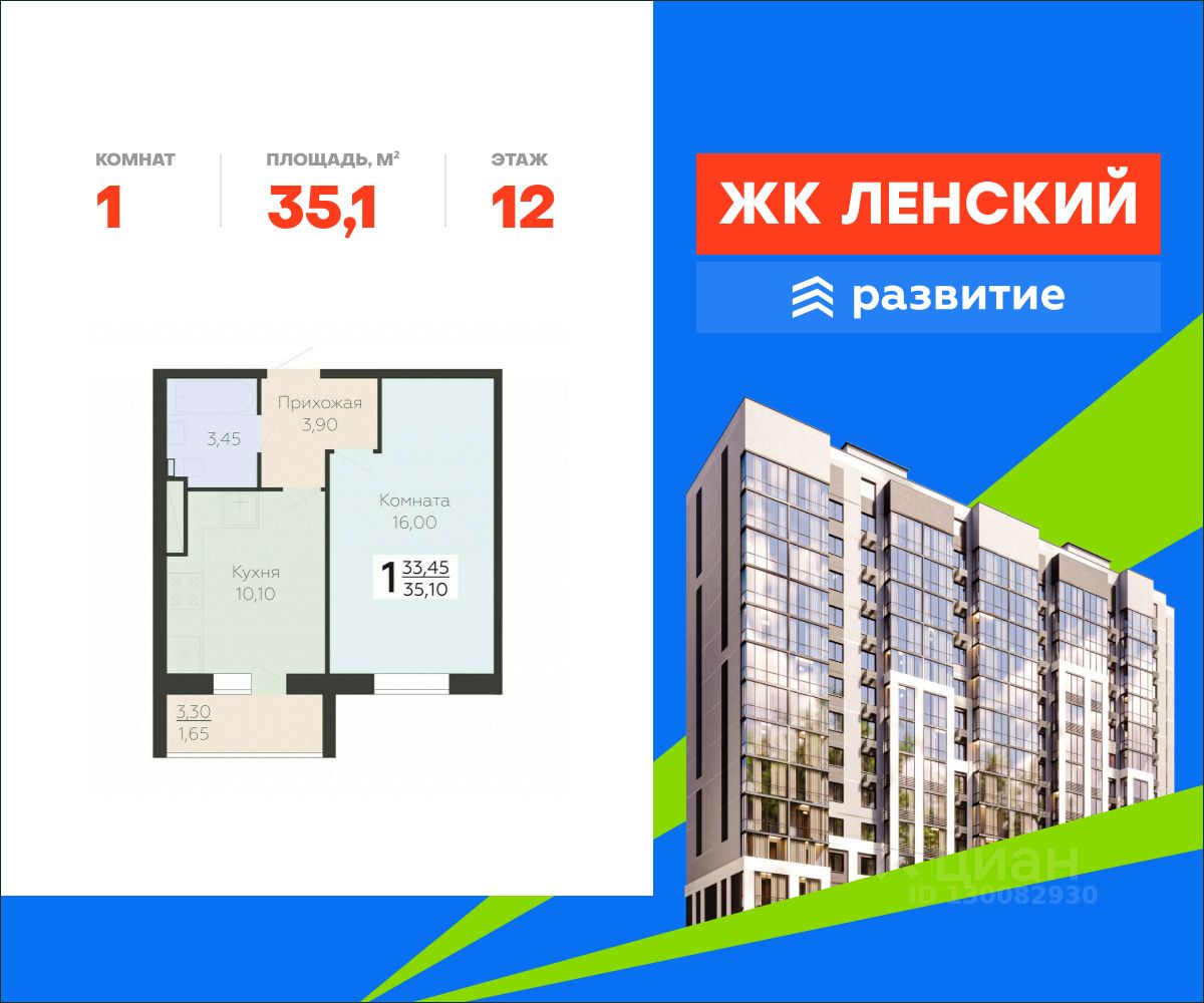 В продаже квартира площадью 35.10 кв. м с отделкой на 12 этаже 16 этажного дома. Квартира находится в 4835 корпусе: