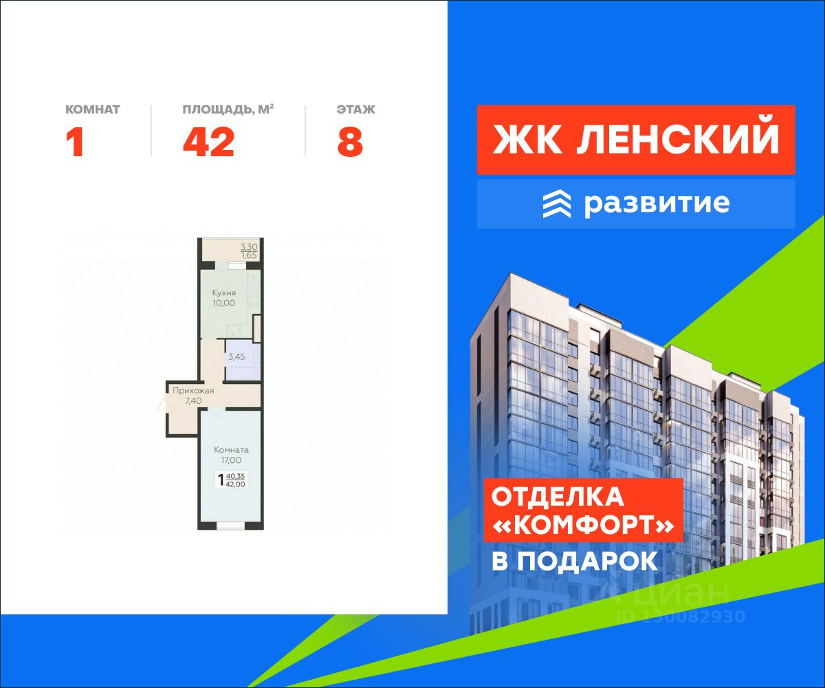 В продаже квартира площадью 42.00 кв. м с отделкой white box на 8 этаже 16 этажного дома. Квартира находится в 4834 корпусе: