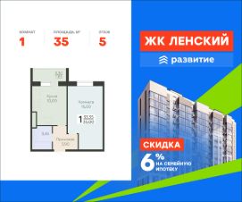 В продаже квартира площадью 35.00 кв. м с отделкой white box на 5 этаже 16 этажного дома. Квартира находится в 4834 корпусе: