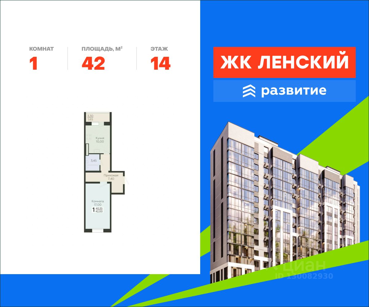 В продаже квартира площадью 42.00 кв. м с отделкой white box на 14 этаже 16 этажного дома. Квартира находится в 4834 корпусе: