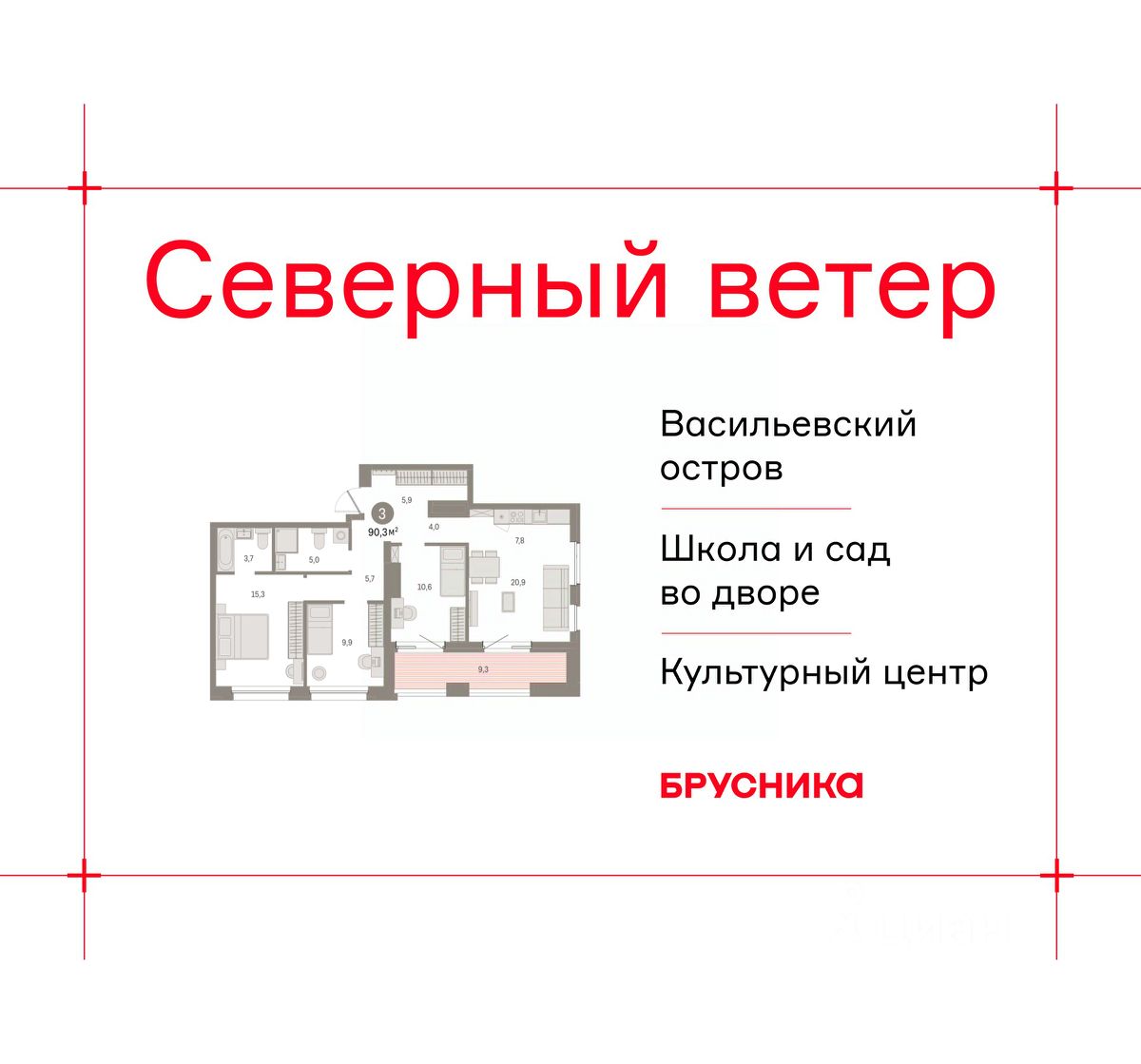 3-комн. квартира с предчистовой отделкой в ЖК "Северный ветер" на 15 этаже. Общая площадь: 90.27 кв.м., жилая: 35.8 кв.м., площадь просторной кухни-столовой: 28.7 кв.м. Угловая квартира, идеально подойдет любителям тишины и панорамных видов. В квартире одна лоджия, два совмещенных санузла. Высота потолков 2.72 м.