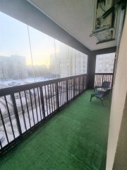 Огромная красивая лоджия с панорамным остеклением.