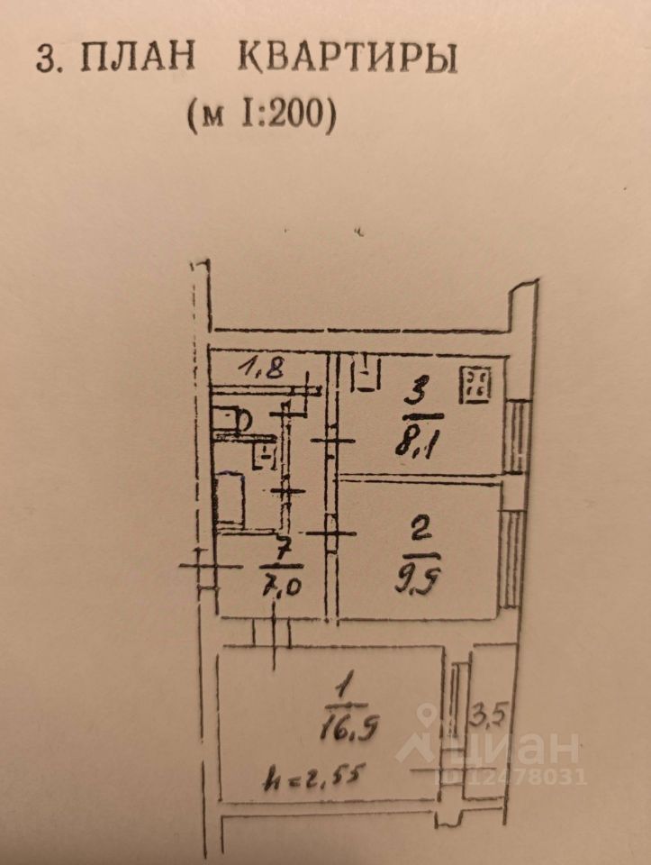 Общая площадь квартиры 47,5 кв.м.+лоджия 3,5 кв.м. Комнаты 16,9+9,9 кв.м., не узкие, изолированные. Кухня 8,1 кв.м.. Сан-узел раздельный, есть кладовка 1,8 кв.м..