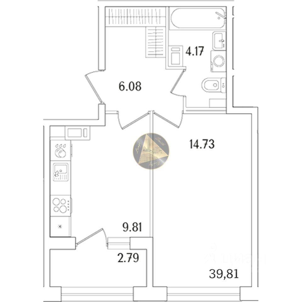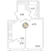 Квартира находится на 9/17 этаже. Общая площадь квартиры 39.81 м2.