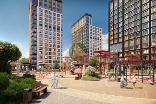1. На территории комплекса организован закрытый двор без машин с авторским благоустройством. Для жителей предусмотрены просторный центральный двор-плейхаб с разными форматами активностей, беговая дорожка, сад непрерывного цветения, настольный теннис, детская площадка и зона для стритбола.