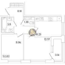 Квартира находится на 11/14 этаже. Общая площадь квартиры 52.82 м2.
