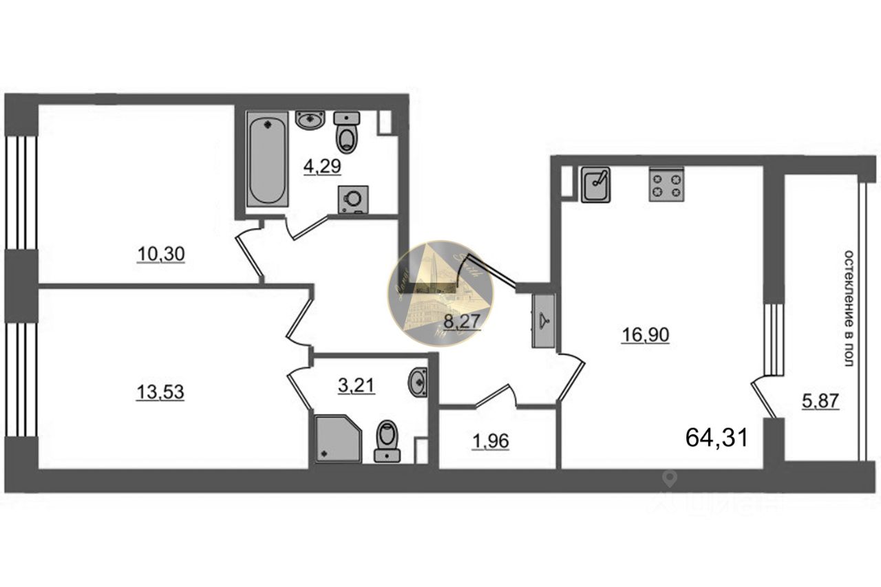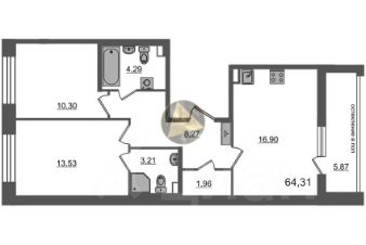 Общая площадь квартиры 64.31 м2.