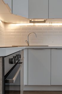 кухонная мебель и техника: духовой шкаф, варочная панель, вытяжка, посудомоечная машина, а также вместительный шкаф остается новому собственнику.