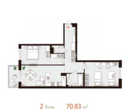 Общая площадь квартиры составляет 70,8 кв. м, из которых 23 кв. м — жилая площадь. Две изолированные комнаты (10 кв. м и 13 кв. м) идеально подойдут для семьи с детьми. Просторная кухня площадью 18,9 кв. м станет местом для семейных ужинов и дружеских встреч. Высота потолков 2,7 м создаёт ощущение простора и свободы.