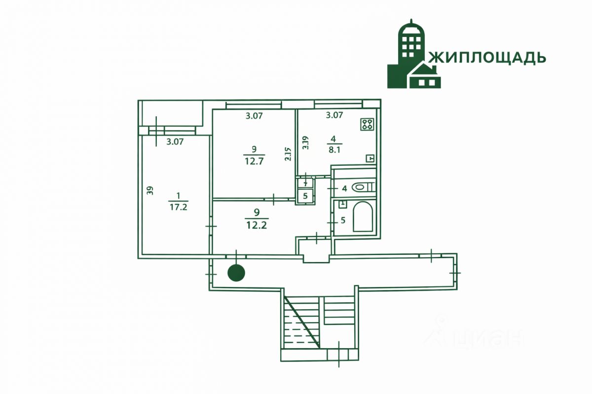 - жилые изолированные комнаты 17,2 квм + 12,9 квм;