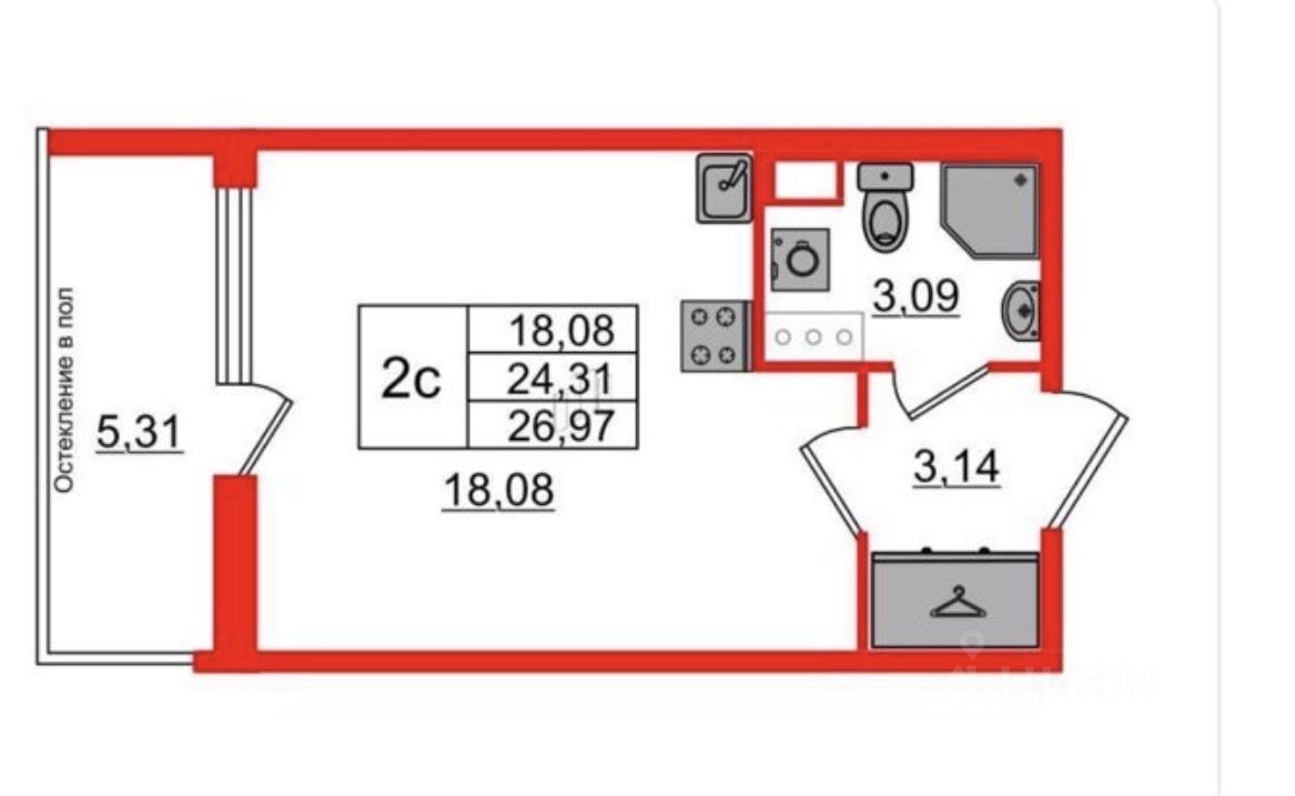 Продаётся по переуступке квартира площадью 24.3 квадратных метра на шестом этаже 12-ти этажного дома, расположенного по адресу: Санкт-Петербург, пр. Большой Смоленский