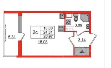 Жилая площадь составляет комфортные 18 квадратных метров, что идеально подойдет как для одного человека, так и небольшой семьи. Квартира с отделкой.