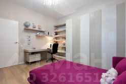 Детская комната оборудована качественной встроенной мебелью: большой гардеробный шкаф, широкий письменный стол, кровать.