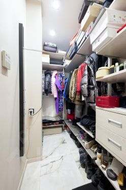 Спальня удалена от остальных комнат. Установлена вместительная гардеробная система (женская и мужская половины), большая кровать. Из всех комнат выходы на остекленную благоустроенную лоджию (с дополнительными местами для хранения).