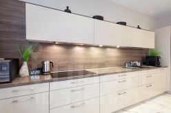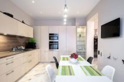 Парадная часть квартиры просторная гостиная 28 метров, в которой с комфортом разместится большая компания гостей. Отдельная кухня 17 метров, примыкающая к гостиной. Установлена качественная немецкая мебель LEICHT. Кухня оборудована встроенной техникой премиального бренда Kuppersbusch: посудомоечная машина, духовой шкаф, микроволновая печь. Встроенный холодильник Liebherr.